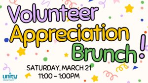 We, the church staff, are hosting a Volunteer Appreciation Brunch to celebrate and thank all our church community volunteers!